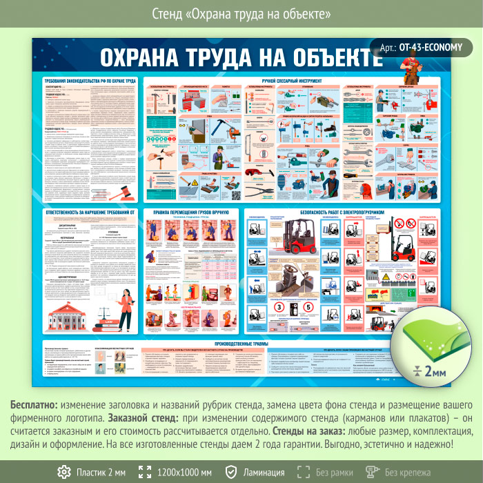 Стенд «Охрана труда на объекте» (OT-43-ECONOMY) в Верее купить