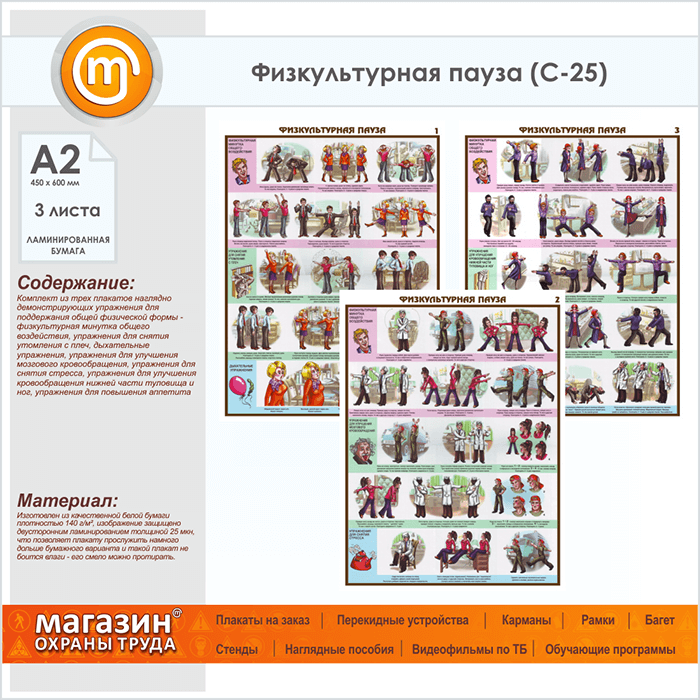 Плакаты «Физкультурная пауза» (С-25, ламинированная бумага, А2, 3 листа) в Верее купить