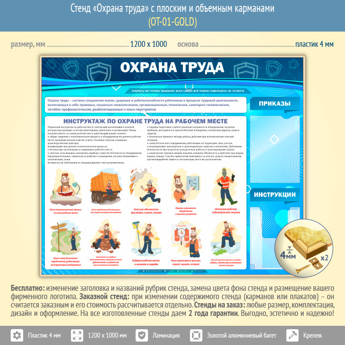 Стенд «Охрана труда» с плоским и объемным карманами (OT-01-GOLD) в Верее купить