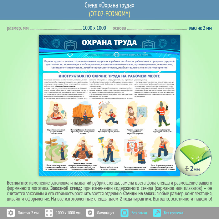 Стенд «Охрана труда» (OT-02-ECONOMY) в Верее купить