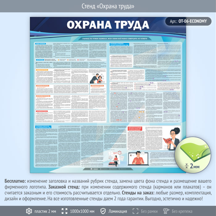 Стенд «Охрана труда» (OT-06-ECONOMY) в Верее купить