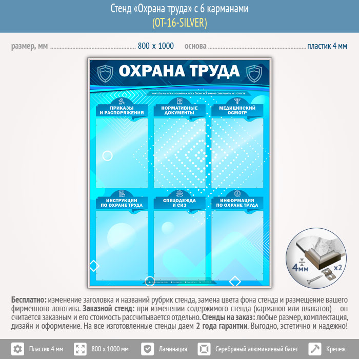 Стенд «Охрана труда» с 6 карманами (OT-16-SILVER) в Верее купить
