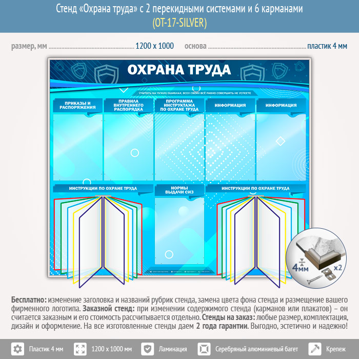 Стенд «Охрана труда» с 2 перекидными системами и 6 карманами (OT-17-SILVER) в Верее купить