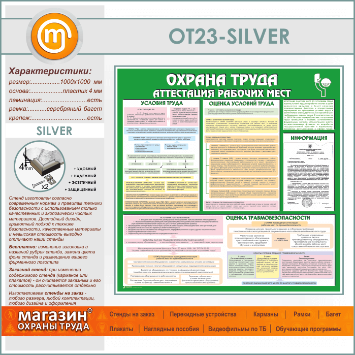Стенд «Охрана труда. Аттестация рабочих мест» с карманом (OT-23-SILVER) в Верее купить