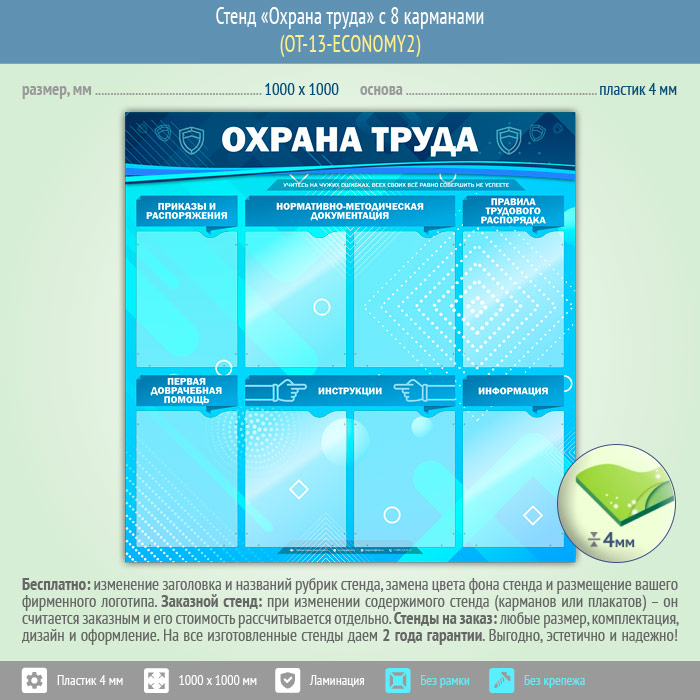 Стенд «Охрана труда» с 8 карманами (OT-13-ECONOMY2) в Верее купить