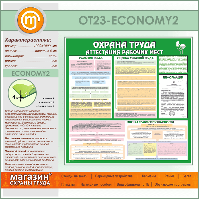 Стенд «Охрана труда. Аттестация рабочих мест» с карманом (OT-23-ECONOMY2) в Верее купить