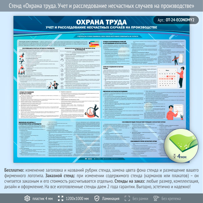 Стенд «Охрана труда. Учет и расследование несчастных случаев на производстве» (OT-24-ECONOMY2) в Верее купить