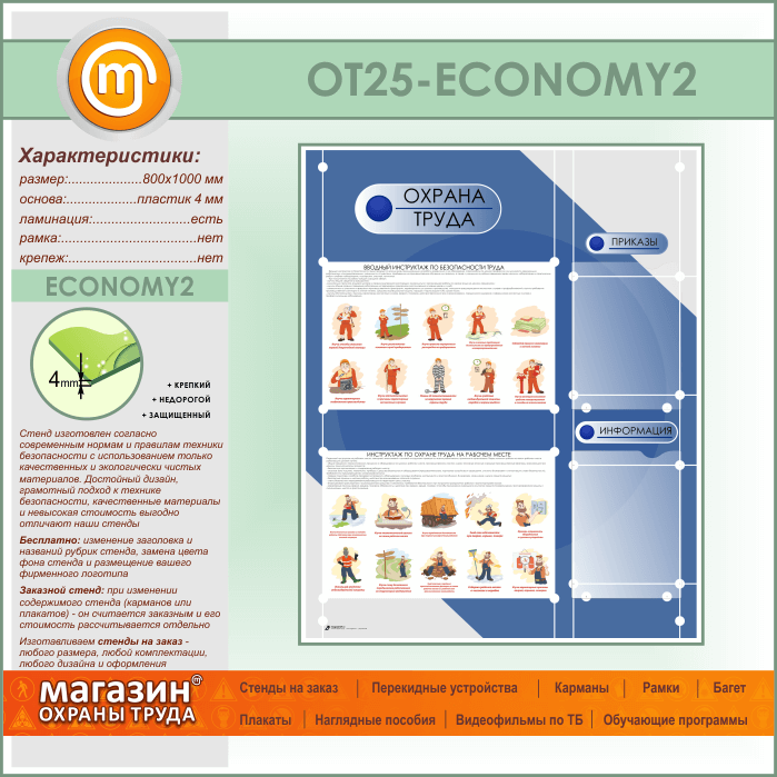 Стенд «Охрана труда» с 2 плоскими карманами (OT-25-ECONOMY2) в Верее купить