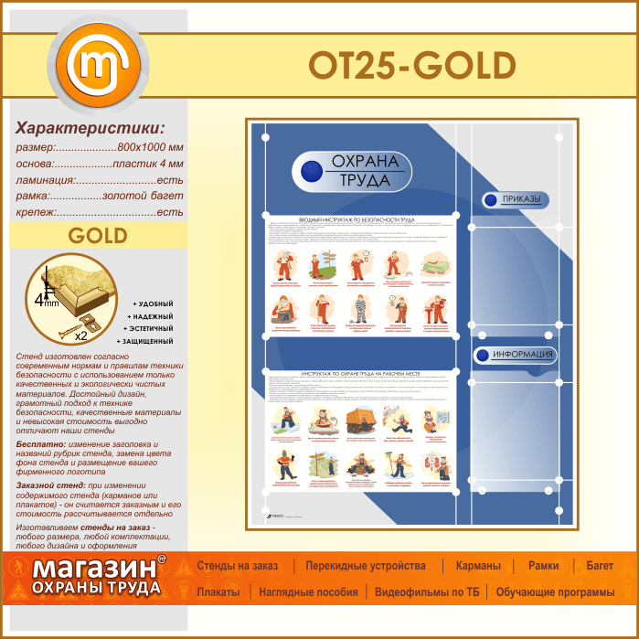 Стенд «Охрана труда» с 2 плоскими карманами (OT-25-GOLD) в Верее купить