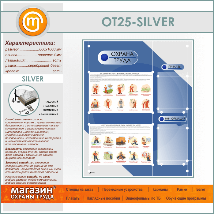 Стенд «Охрана труда» с 2 плоскими карманами (OT-25-SILVER) в Верее купить
