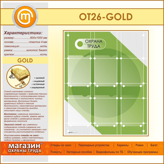 Стенд «Охрана труда» с 6 плоскими карманами (OT-26-GOLD) в Верее купить