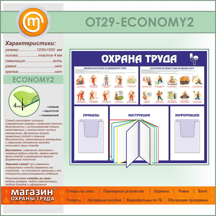 Стенд «Охрана труда» с перекидной системой и 2 объемными карманами (OT-29-ECONOMY2) в Верее купить