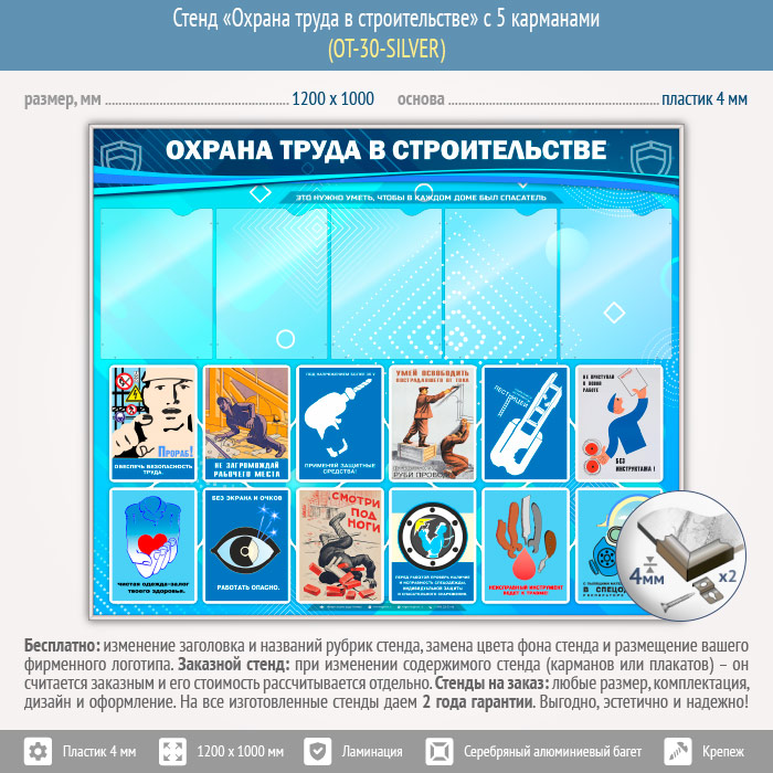 Стенд «Охрана труда в строительстве» с 5 карманами (OT-30-SILVER) в Верее купить