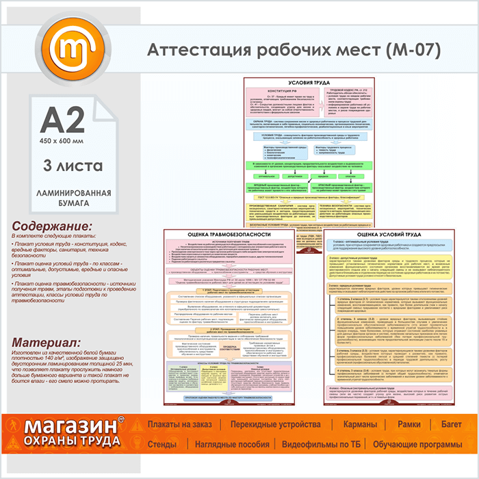 Плакаты «Аттестация рабочих мест» (М-07, ламинированная бумага, А2, 3 листа) в Верее купить