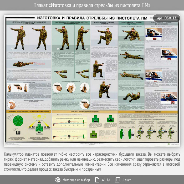 Плакат «Изготовка и правила стрельбы из пистолета ПМ» (ОБЖ-12, 1 лист) в Верее купить