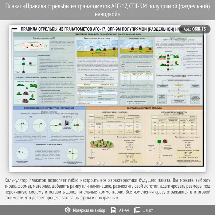 Плакат «Правила стрельбы из гранатометов АГС-17, СПГ-9М полупрямой (раздельной) наводкой» (ОБЖ-13, 1 лист) в Верее купить