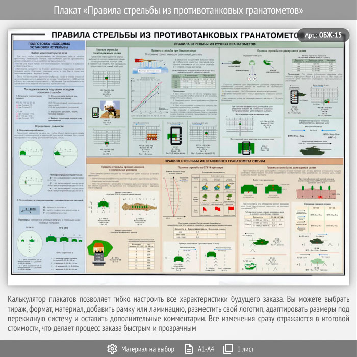 Плакат «Правила стрельбы из противотанковых гранатометов» (ОБЖ-15, 1 лист) в Верее купить