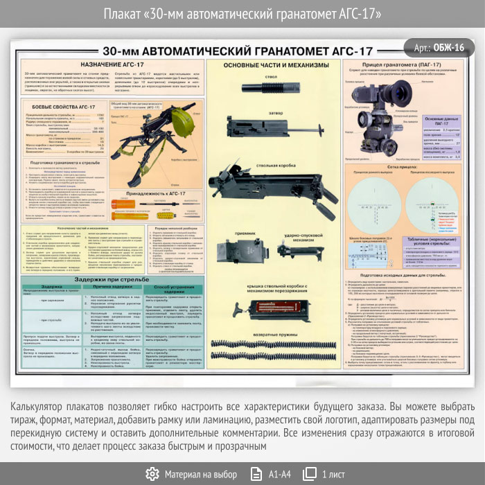 Плакат «30-мм автоматический гранатомет АГС-17» (ОБЖ-16, 1 лист) в Верее купить