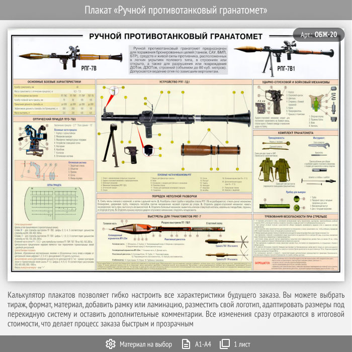 Плакат «Ручной противотанковый гранатомет» (ОБЖ-20, 1 лист) в Верее купить