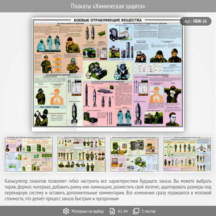 Плакаты «Химическая защита» (ОБЖ-26, 5 листа) в Верее купить