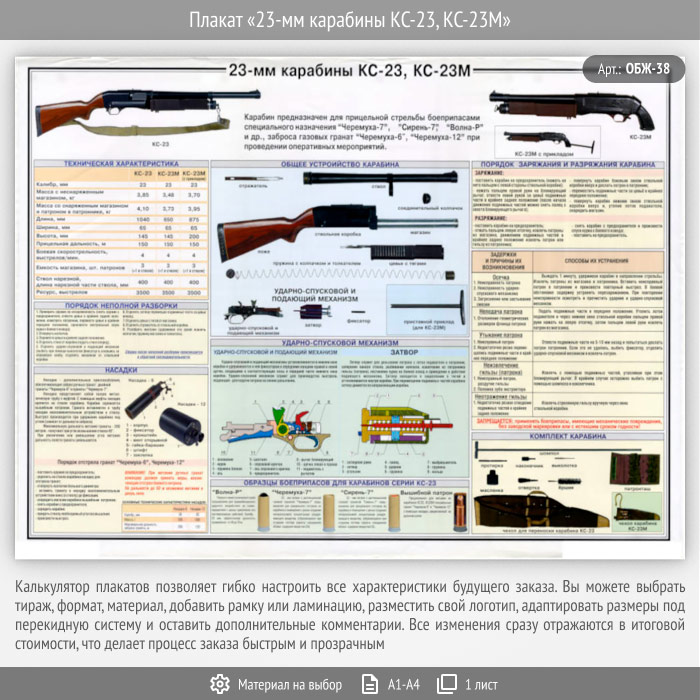Плакат «23-мм карабины КС-23, КС-23М» (ОБЖ-38, 1 лист) в Верее купить