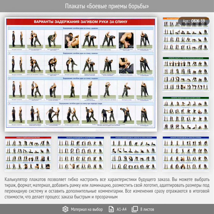Плакаты «Боевые приемы борьбы» (ОБЖ-39, 8 листа) в Верее купить