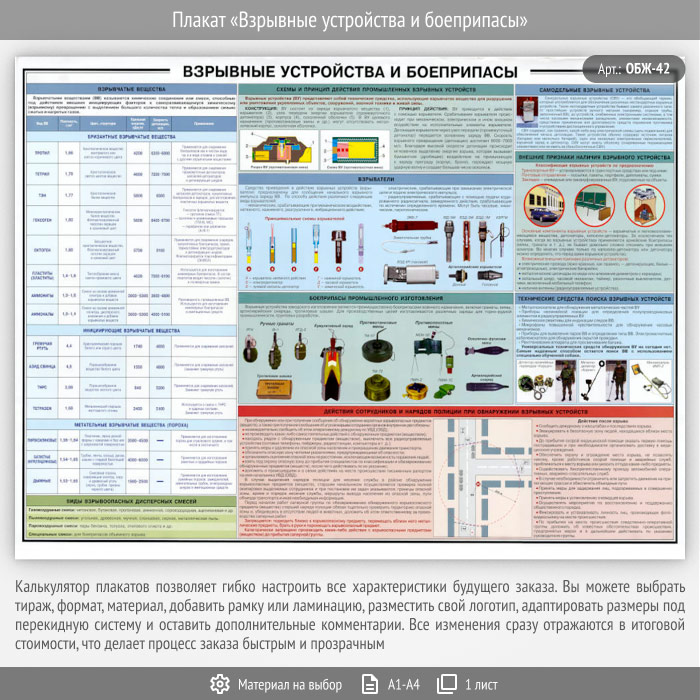 Плакат «Взрывные устройства и боеприпасы» (ОБЖ-42, 1 лист) в Верее купить