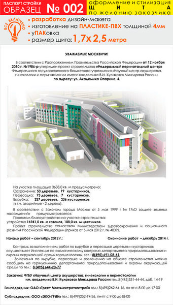 Паспорт стройки, образец № 2 (пластик 4 мм, 1700х2500 см) в Верее купить