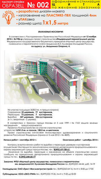 Паспорт стройки, образец № 2 (пластик 4 мм, 1000х1500 cм) в Верее купить