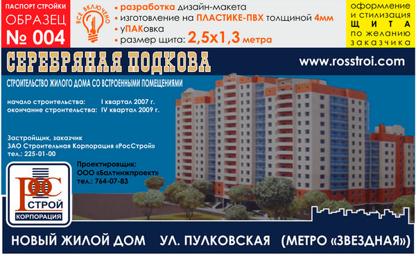 Паспорт стройки, образец № 4 (пластик 4 мм, 2500х1300 cм) в Верее купить