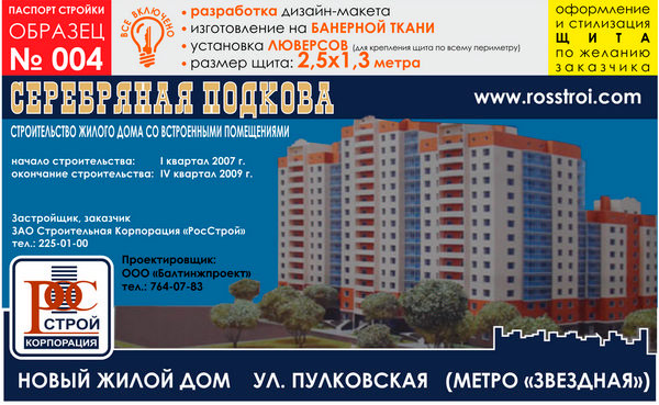 Паспорт стройки, образец № 4 (баннерная ткань, 2500х1300 cм) в Верее купить