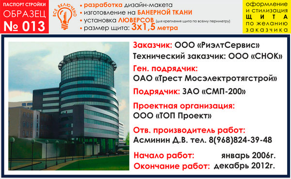 Паспорт стройки, образец № 13 (баннерная ткань, 3000х1500 cм) в Верее купить