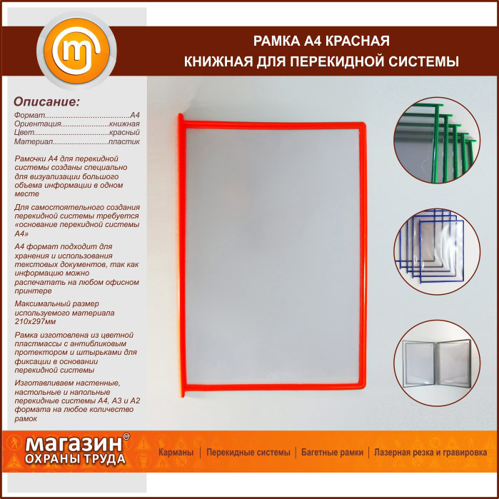 Рамка А4 красная книжная в Верее купить