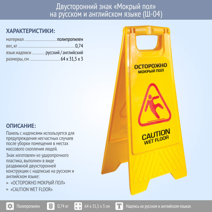 Знак «Мокрый пол» на русском и английском языке (Ш-04) в Верее купить