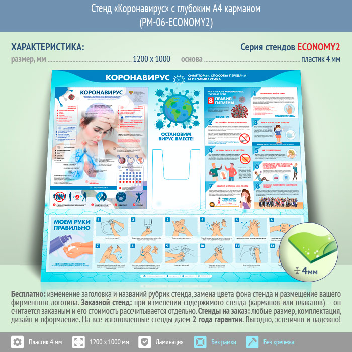 Стенд «Коронавирус» с глубоким А4 карманом (PM-06-ECONOMY2) в Верее купить