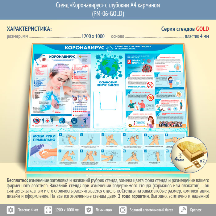 Стенд «Коронавирус» с глубоким А4 карманом (PM-06-GOLD) в Верее купить