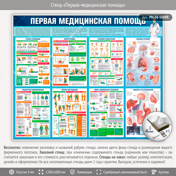 Стенд «Первая медицинская помощь» (PM-08-SILVER) в Верее купить