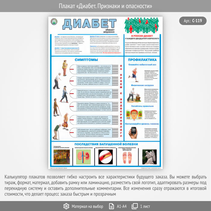 Плакат «Диабет. Признаки и опасности» (С-119, 1 лист)