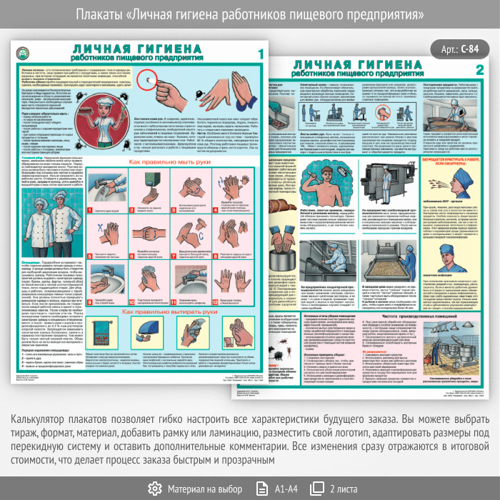 Комплект плакатов «Личная гигиена работников пищевого предприятия» из 2 листов – достойное качество и полезная информация по приемлемой цене