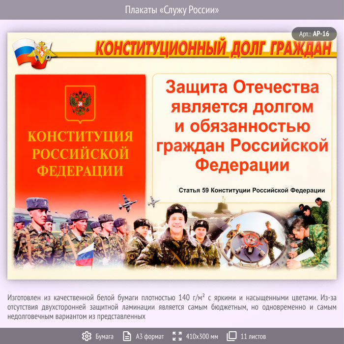 Плакаты «Служу России» (АР-16, бумага, А3, 11 листов) в Верее купить