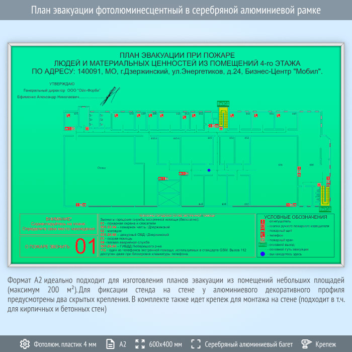 План эвакуации фотолюминесцентный в серебряной алюминиевой рамке (А2 формат) в Верее купить