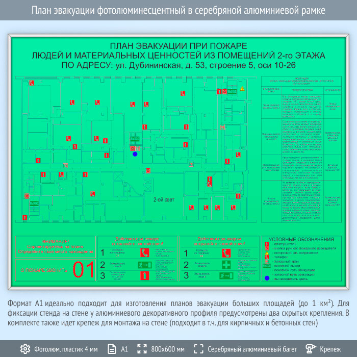 План эвакуации фотолюминесцентный в серебряной алюминиевой рамке (А1 формат) в Верее купить