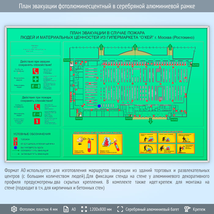 План эвакуации фотолюминесцентный в серебряной алюминиевой рамке (А0 формат) в Верее купить