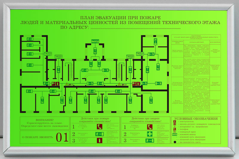 МАЛОИСПОЛЬЗУЕМЫЙ ФОРМАТ малоиспользуемый формат. Подходит для изготовления схем однокомнатных (максимум трехкомнатных) помещений. Содержит схематичное изображение помещения с размещенными на нем средствами пожаротушения, путями эвакуации и условные обозначения. НЕ МОЖЕТ содержать инструкцию и действия при пожаре |