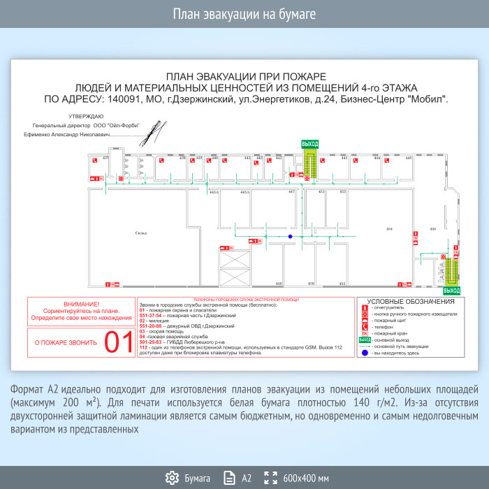 План эвакуации на бумаге (А2 формат) в Верее купить