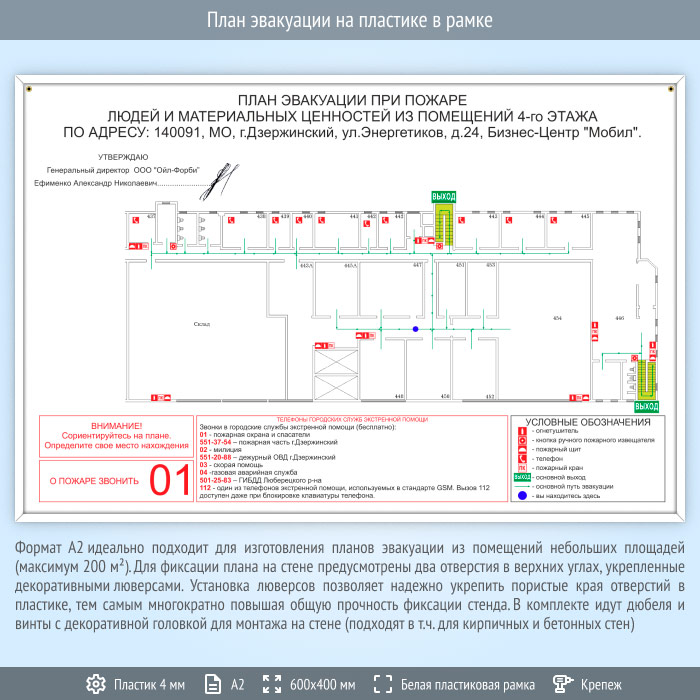 План эвакуации на пластике в рамке (А2 формат) в Верее купить