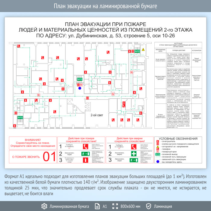 План эвакуации на ламинированной бумаге (А1 формат) в Верее купить