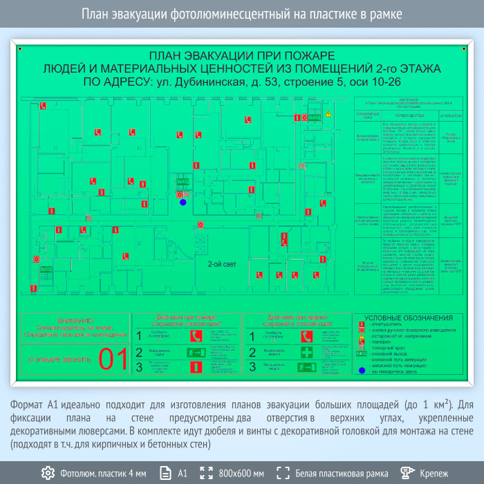 План эвакуации фотолюминесцентный на пластике в рамке (А1 формат) в Верее купить