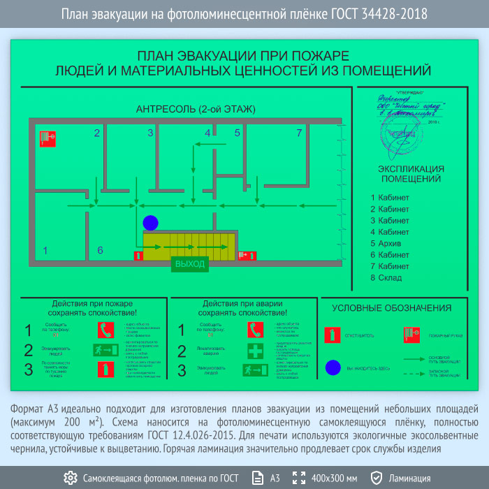 План эвакуации на фотолюминесцентной плёнке ГОСТ 34428-2018 (А3 формат) в Верее купить