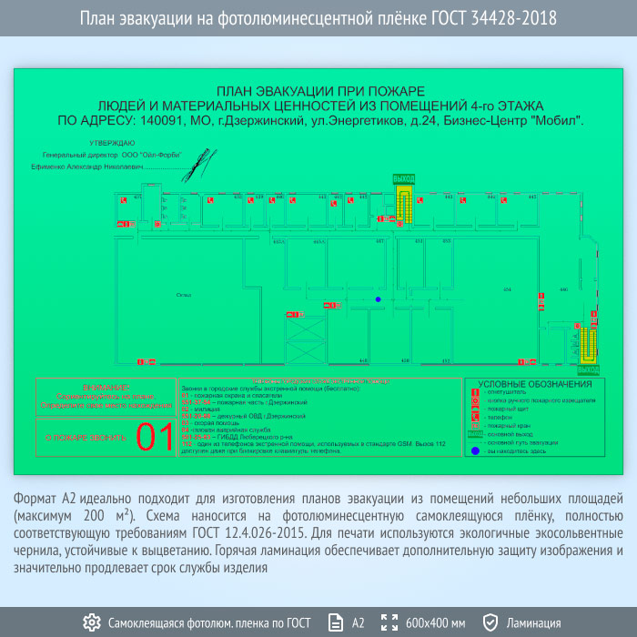 План эвакуации на фотолюминесцентной плёнке ГОСТ 34428-2018 (А2 формат) в Верее купить